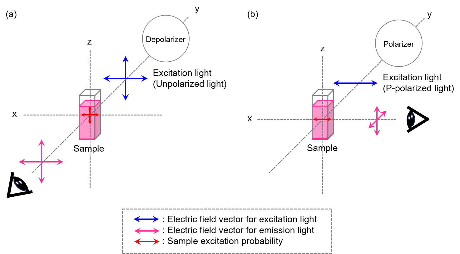 Fig. 9 Relationship between polarization of excitation light and fluorescence: