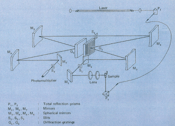 Fig. 15 Configuration of JASCO Raman Spectrophotometer R-300 employing Ar+ laser