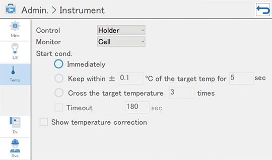The users can manage (set or confirm) about general instrument settings, including usage condition, basic function, user/tool registration, and so on.