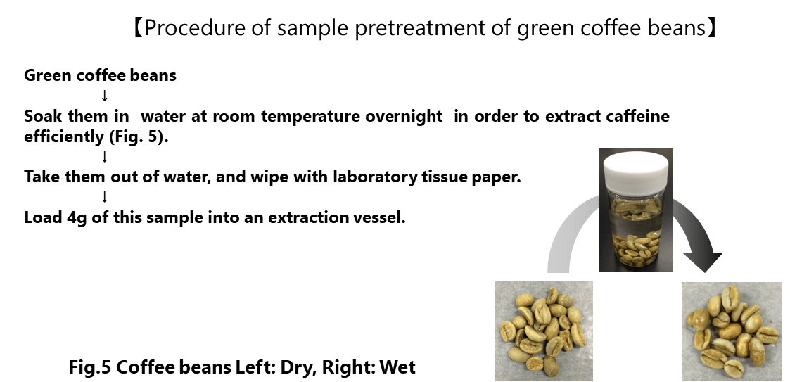 – We achieved the extraction and fraction collection of caffeine from green coffee beans by switching system of SFE/Prep SFC-MS.